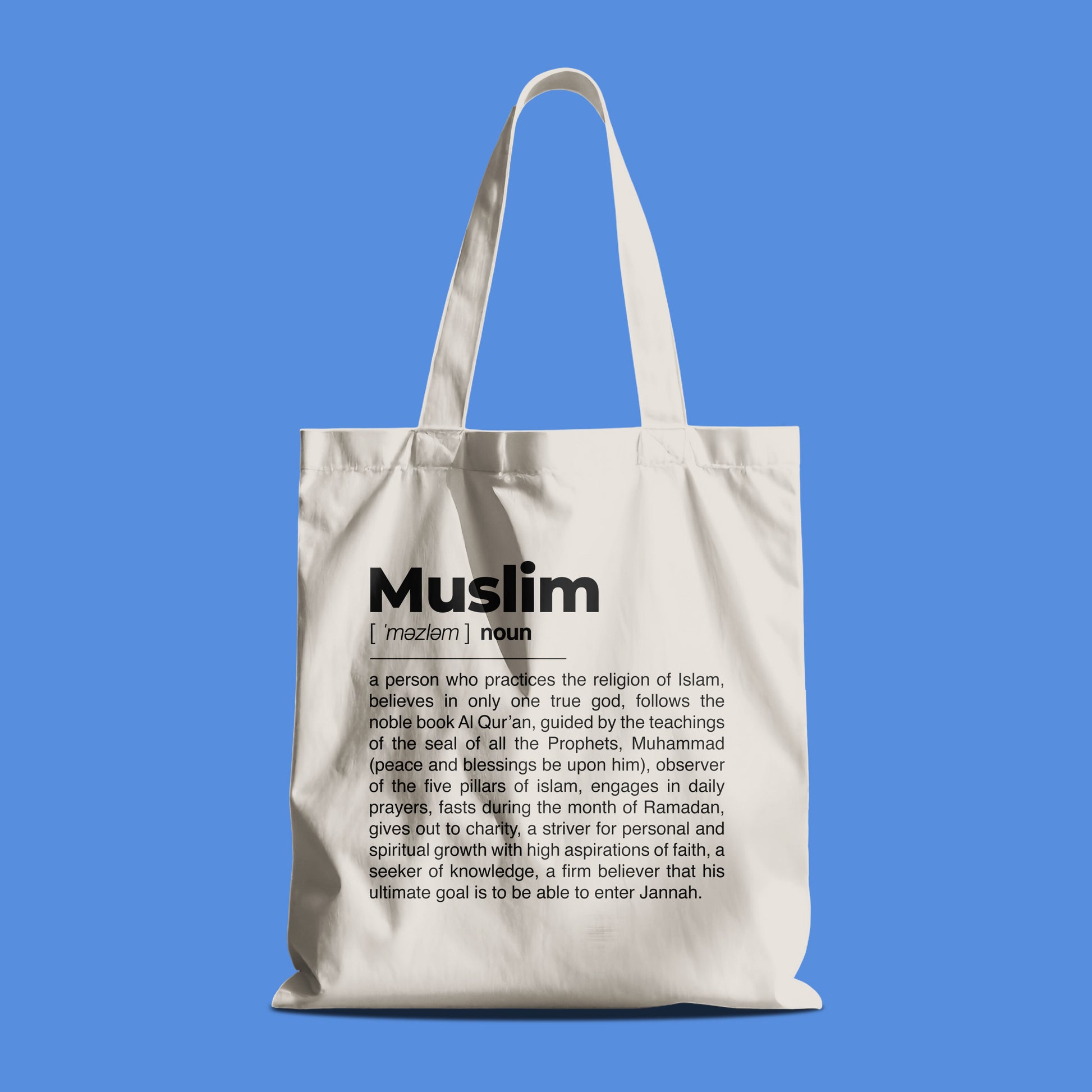 Make a statement of faith with simplicity and style. This minimalist tote features the word “Muslim” presented in a clean, dictionary-inspired design — celebrating identity, belief, and belonging. A perfect blend of modern design and meaningful expression.